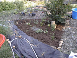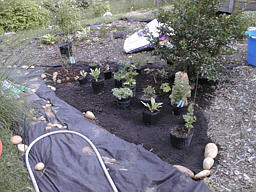 I replaced this with some real organic material and then went on a shopping spree for plants (which are shown here pre- planted).