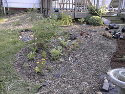 Here is the second bed that was originally started to have a place to put my Red Twig Dogwood. I added a bunch of Hostas and Astilbes that I bought this year. A few accent plants (Lantana, Vera Jameson Sedum, and another Crepe Myrtle) along with some annuals round out this bed.